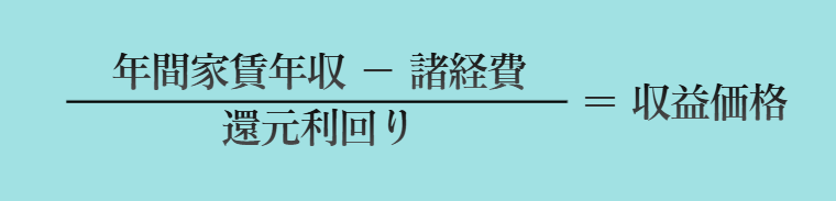 主に投資用物件や賃貸用物件に用いられる手法です。その物件を賃貸に出した場合に将来得られる利益や利回りをベースに、現在の資産価値を逆算して決定します